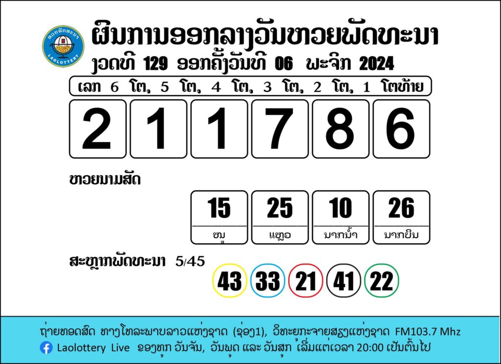 ผลรางวัลหวยลาววันนี้ งวดวันที่ 6 พฤศจิกายน 2567