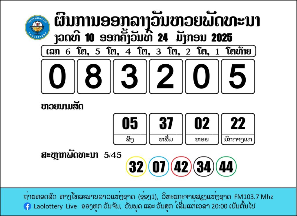 ผลรางวัลหวยลาววันนี้ งวดวันที่ 24 มกราคม 2568