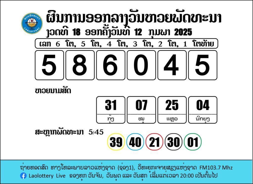 ผลรางวัลหวยลาววันนี้ งวดวันที่ 12 กุมภาพันธ์ 2568