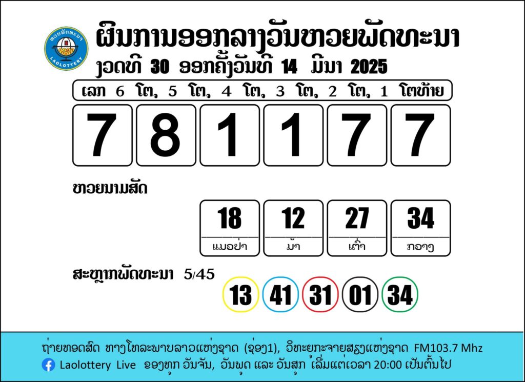 ผลรางวัลหวยลาววันนี้ งวดวันที่ 14 มีนาคม 2568