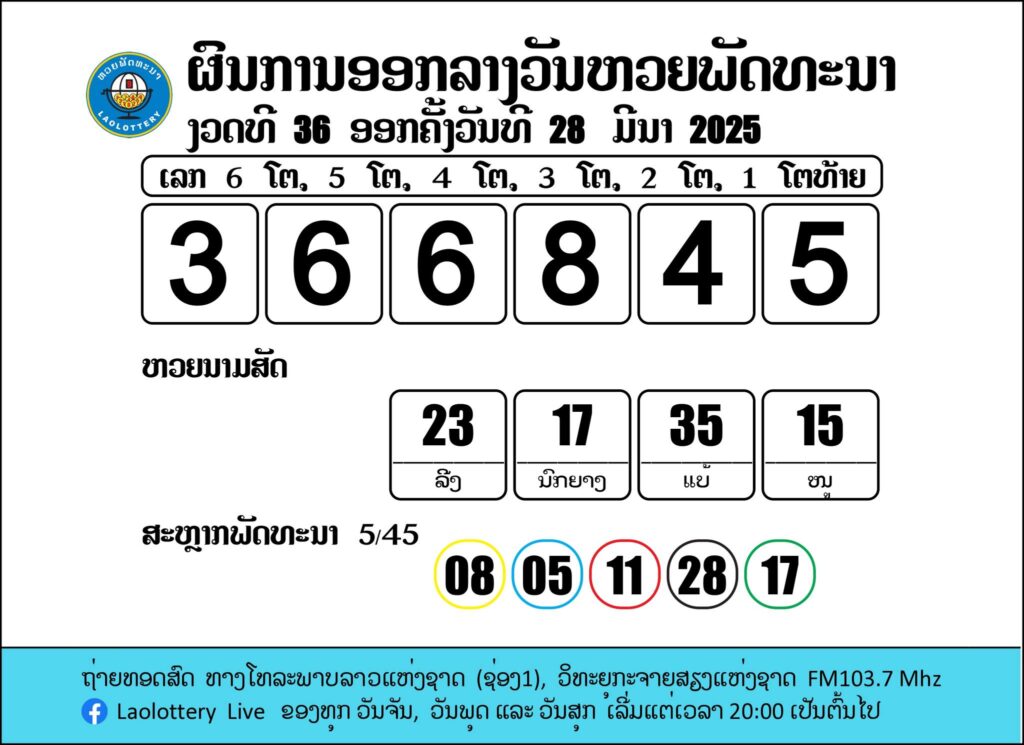 ผลรางวัลหวยลาววันนี้ งวดวันที่ 28 มีนาคม 2568