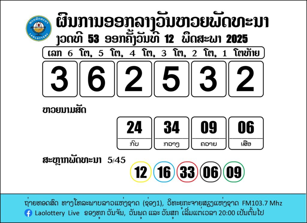 ผลรางวัลหวยลาววันนี้ งวดวันที่ 12 พฤษภาคม 2568