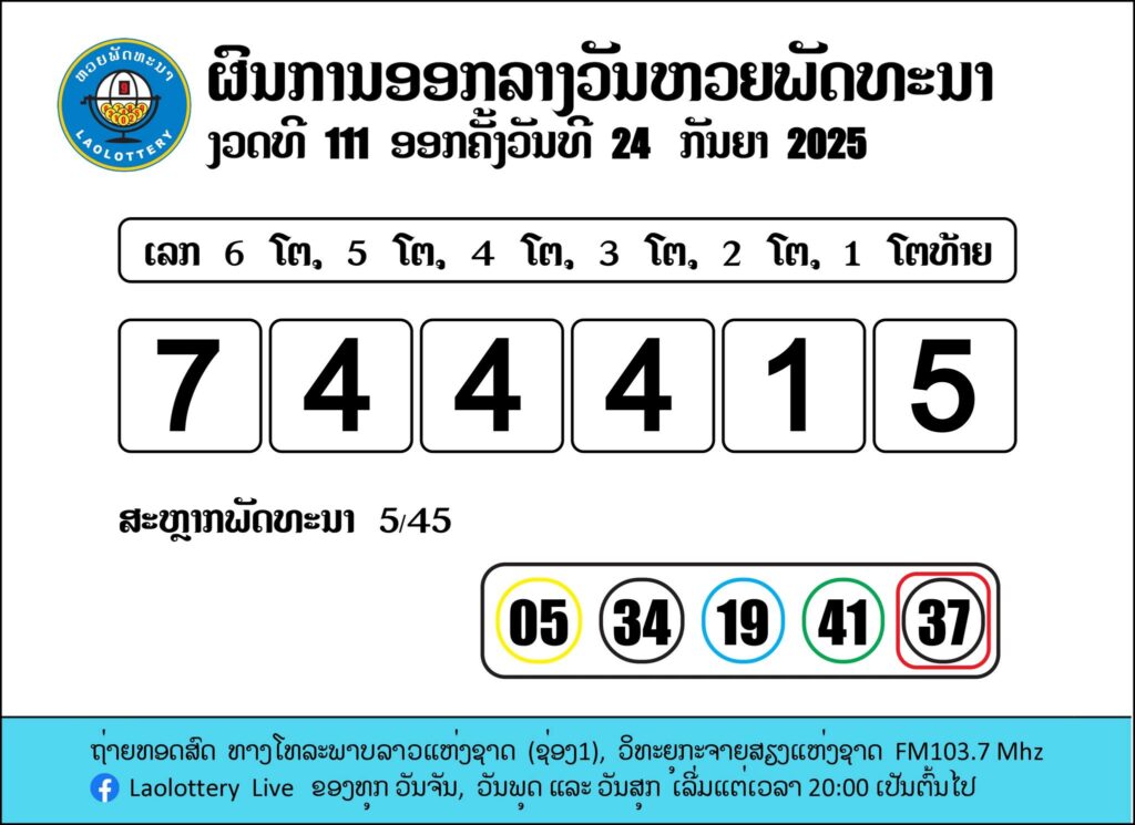 ผลรางวัลหวยลาววันนี้ งวดวันที่ 24 กันยายน 2568