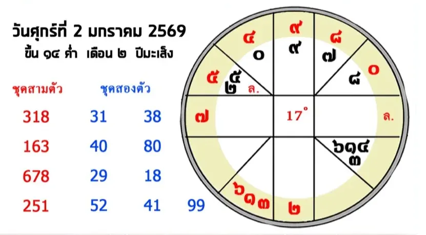 ดวงดาวของงวดนี้ผูกกับวันศุกร์ที่ 2 มกราคม 2569 ซึ่งโหราจารย์มองว่าเป็นจังหวะของดวงการเงินและการเปลี่ยนแปลง ใครกำลังเริ่มต้นปีใหม่ด้วยการตั้งเป้าทางการเงิน เลขจากดวงดาวถือเป็นสัญลักษณ์เล็กๆ ว่า “ปีนี้ฉันจะไม่ปล่อยโอกาสเรื่องโชคลาภให้หลุดมือ”