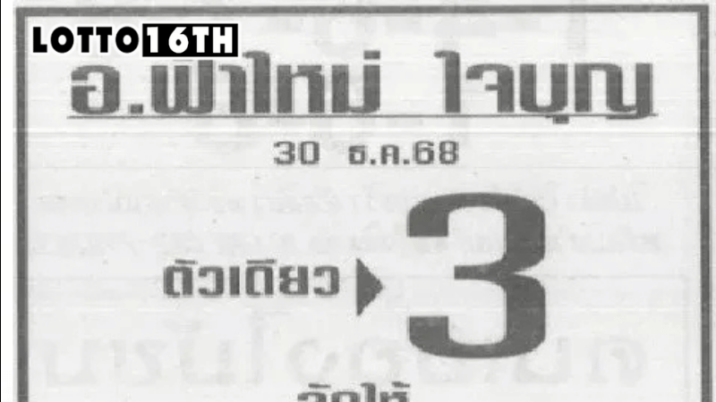 เมื่อพูดถึงสายเลขวิ่งเน้นตัวเดียว หลายคนต้องนึกถึง เลขเด็ด อ.ฟ้าใหม่ ใจบุญ ที่มักปล่อยแนวทางแบบจัดหนัก ชี้เป้าเลขเด่นเพียงเลขเดียวให้คอเลขไปโฟกัสกันชัด ๆ งวดวันที่ 2 มกราคม 2569 ก็เช่นกัน แผ่นแนวทางล่าสุดของอาจารย์ระบุวัน–เดือน–ปีชัดเจน พร้อมวางโครงเลขให้ดูง่ายตามสไตล์เซียนรุ่นเก๋า เหมาะกับคนที่ไม่ชอบตัวเลขเยอะจนตาลาย แต่อยากมองหาจุดโฟกัสหลัก ๆ เอาไว้พิจารณา
