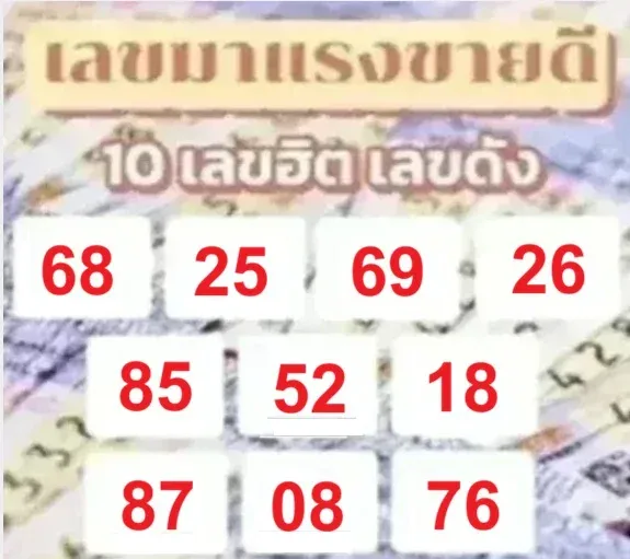 - กลุ่มเลขเด่นที่ถูกพูดถึงบ่อย: 68, 69, 87, 76