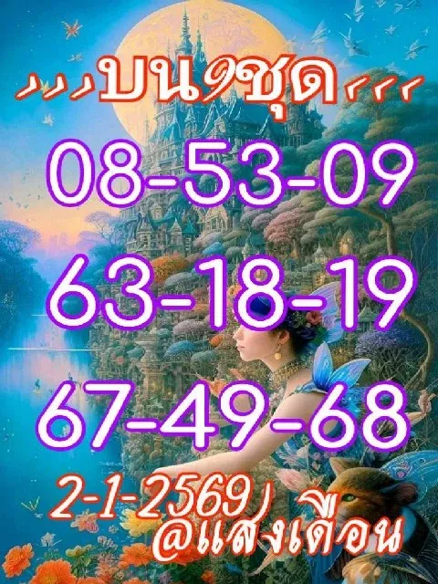 สำหรับผู้อ่านที่ต้องการเก็บตัวเลขจากชุด “แสงเดือน บน 9 ชุด งวด 2 มกราคม 2569” ไปใช้เป็นข้อมูลประกอบการตัดสินใจ ตัวเลขที่ปรากฏชัดในภาพนี้ สามารถสรุปเป็นชุดตัวเลขสองตัวบนดังนี้