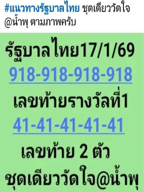 งวดวันที่ 17/1/69 ตัวเลขที่ถูกวางให้เด่นที่สุดคือ 918 และที่น่าสนใจคือเขาย้ำมารัวๆ แบบจงใจให้ “ติดตา”