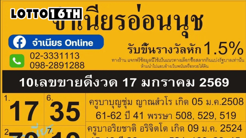 แนวทางหวยจาก Lotto16th ให้โชคปังทุกงวด ไม่มีพลาด พร้อมอัปเดตเลขดังทั่วไทยทุกวัน