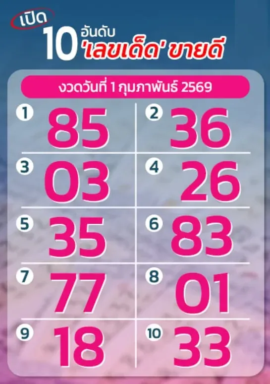 🧾 เช็กให้ครบ! 10 อันดับเลขเด็ดขายดี งวด 1 ก.พ. 69