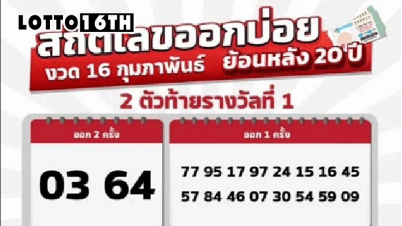 ถ้าคุณเป็นสายลุ้นรางวัลใหญ่ แล้วอยากได้ตัวช่วยแบบมีหลักฐาน กลุ่มนี้คือหมวดที่น่าจับตา เพราะเป็น “2 ตัวท้ายรางวัลที่ 1” ที่โผล่มาบ่อยจากข้อมูลย้อนหลัง 20 ปีของงวดวันที่ 16 กุมภาพันธ์