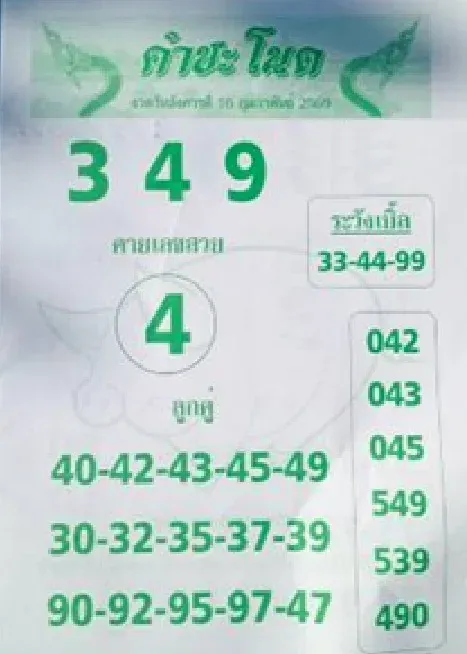 - สายสามตัวให้ยึด 349 เป็นแกน แล้วเลือก 042/043/045 เป็นชุดเสริม เน้นแนว “เลขติดกัน-เลขพาไป”