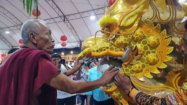 ก่อนที่จะเริ่มการแสดง พระครูยติธรรมานุยุต ได้นำแผ่นยันต์ซองแดง ที่มีวัตถุมงคลรูปมังกรเกี้ยวอยู่ในซอง มาปลุกเสกอธิษฐานจิต เพื่อความเป็นสิริมงคล ซึ่งมีความหมายว่าปีนี้ 2567 จะเป็นปีที่มีโชคลาภ เสริมมงคล เสริมความสุขในทุกด้าน และรับปีมะโรง และต่อมาหลังจากการแสดงจบแล้ว ได้เริ่มจุดประทัดเบิกฤกษ์ชัย 20,000 นัด ปรากฏหมายเลข 520–13 ที่หางประทัด ผู้ชมต่างถ่ายรูปเลขเด็ดเก็บไว้ลุ้นโชค
