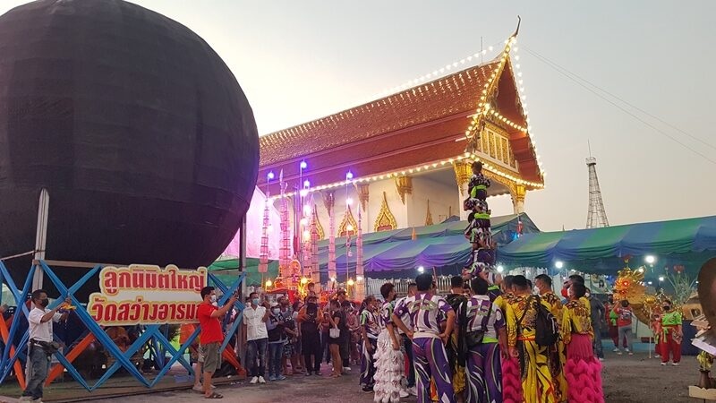 คณะสิงโต มังกรทอง ศิษย์หลวงพ่อแป๊ะ มากับอุปกรณ์การแสดงแบบชุดใหญ่จัดเต็มเพื่อ มาสร้างความสนุกสนานให้กับผู้มางานบุญ ปิดทองลูกนิมิตยักษ์ที่ใหญ่ที่สุดในโลก ปิดทองลูกนิมิต 9 วัด 99 ลูก เพื่อมอบให้วัดที่ขาดแคลน 9 จังหวัด