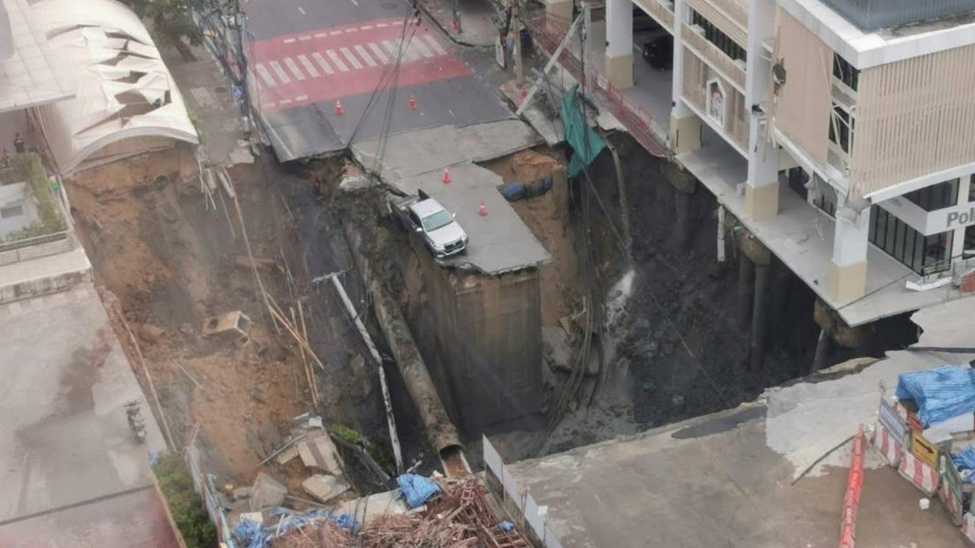 ภาพจากกล้องและผู้ที่อยู่ในเหตุการณ์ เผยให้เห็นรถกระบะสีเงิน ยี่ห้ออีซูซุ ซึ่งจอดคาอยู่ที่ขอบหลุมลึกที่เพิ่งทรุดตัวสด ๆ ร้อน ๆ หน้าโรงพยาบาลวชิรพยาบาล โดยมีเพียงไม่กี่เซนติเมตรเท่านั้นที่ล้อหน้าจะตกลงไป