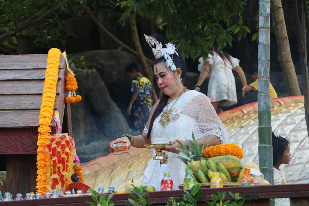 ไฮไลต์ของวันอยู่ที่ “นางสาวสุพชยาฌ์” หรือ “น้องปุ้ย” ชาวกรุงเทพฯ ที่สวมชุดรำสีขาวบริสุทธิ์ เดินทางมาพร้อมเครื่องบูชา เพื่อรำถวายมือแทนการบนบาน หลังจากถูกรางวัลติดต่อกันถึง 4 งวด รับเงินรวมกว่า 500,000 บาท