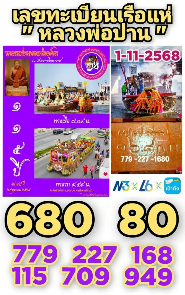 🔢 เลขเด็ดทะเบียนเรือแห่ งวด 1 พฤศจิกายน 68