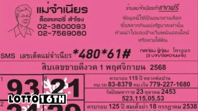 คอหวยเตรียมตัวให้พร้อม! หวยแม่จำเนียร 1 พฤศจิกายน 2568 ปล่อยแนวทาง “ใบชมพูในตำนาน” ออกมาให้ลุ้นกันอีกครั้ง รวมทั้ง 10 อันดับเลขขายดีทั่วประเทศ พร้อม เลขมงคล–เลขดังจากทุกสำนักชื่อดัง ที่บอกเลยว่าแต่ละตัวมาแรงสุดขีด งวดนี้มีครบทั้งเลขพระราชวงศ์, วันสำคัญ, ครบรอบบุคคลสำคัญ และเหตุการณ์ดังที่ทั่วไทยจับตามอง!
