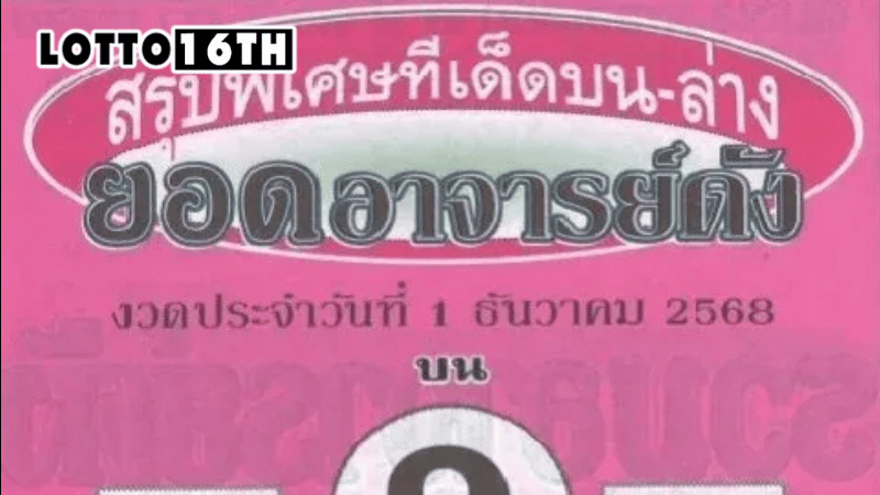 “ยอดอาจารย์ดัง” เป็นหนึ่งในชุดแนวทางที่แฟนหวยเฝ้ารอ เพราะฟอร์มเสถียร ให้กรอบเลขชัดเจน แบ่ง เด่นบน–เด่นล่าง ช่วยตัดสินใจได้เร็ว เหมาะมากสำหรับคนต้องการตัวเลือกกระชับแต่มีน้ำหนัก
