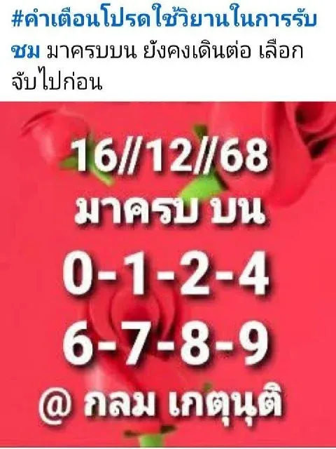 ตัวเลขที่ถูกระบุว่าเป็น “มาครบบน” งวดวันที่ 16/12/68 มีทั้งหมด 8 ตัว คือ