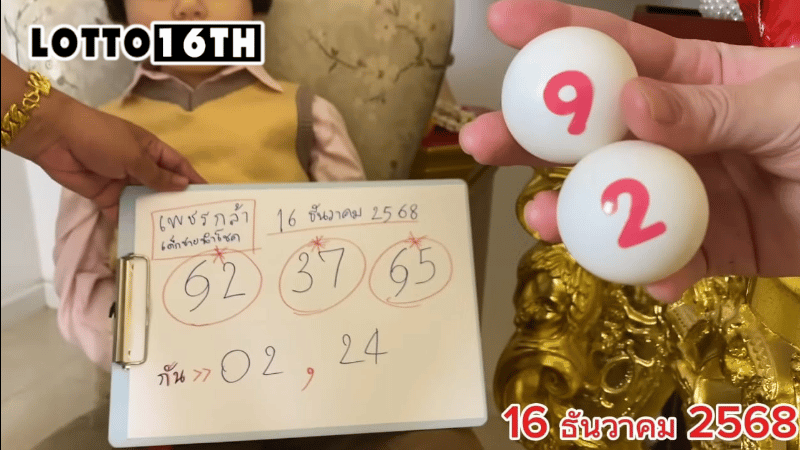 สำหรับงวด 16 ธันวาคม 68 แนวทางจากปิงปองน้องเพชรกล้า เป็นการหยิบลูกปิงปองเสี่ยงทายที่มีตัวเลขกำกับอยู่ ซึ่งแฟนคลับต่างรอดูว่าลูกไหนจะเด้งขึ้นมาเป็นสัญญาณนำโชค