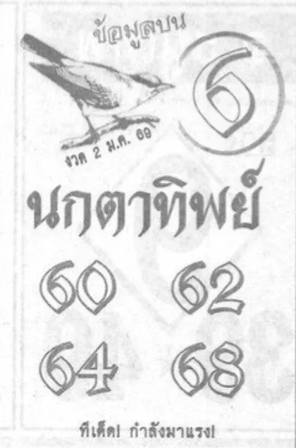 🔢 เจาะโพย “นกตาทิพย์” งวด 02/01/69 เน้นชัดเลขเด่น 6